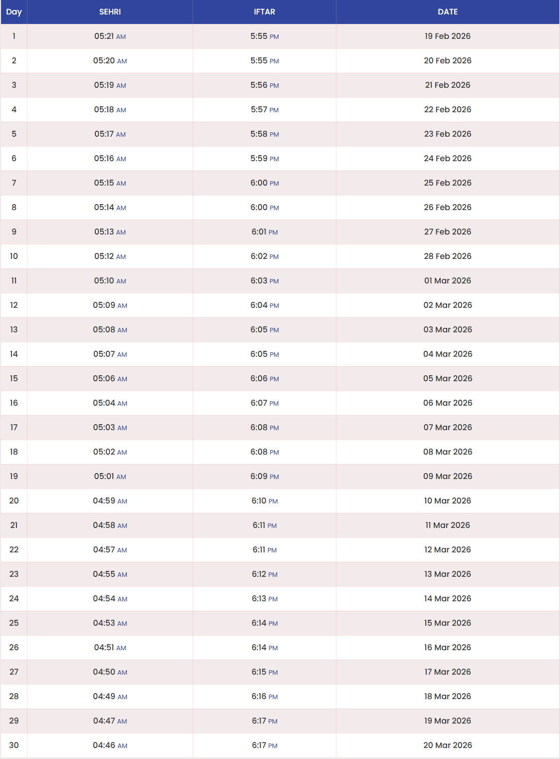 Ramadan Calendar 2026 Jhelum (SEHRI & IFTAR TIME)